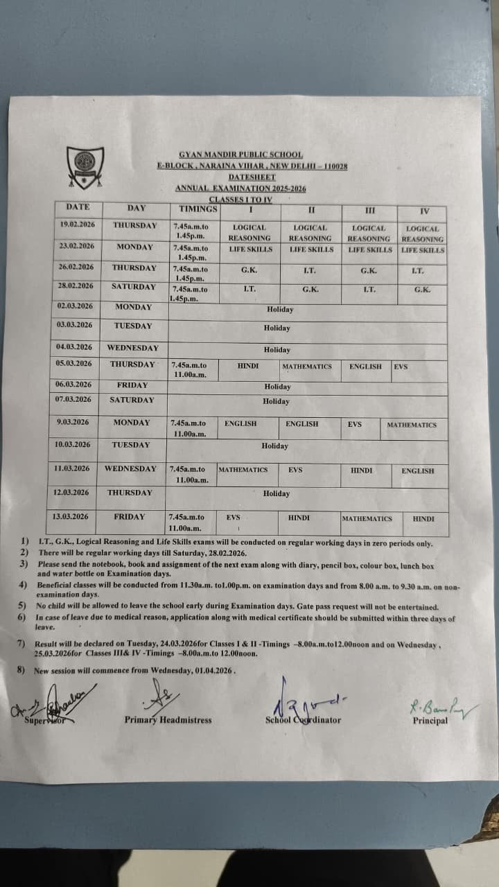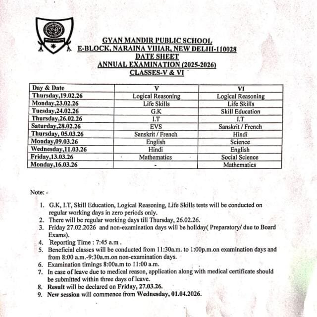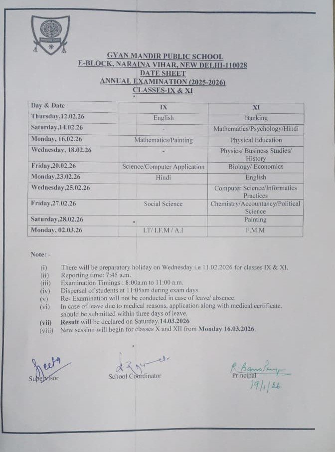 Exam Schedule Curriulum School Calendar Exam Schedule NCERT Link Diksha Link Annual Examination 2025-2026 I To IV V and VI VII and VIII IX and XI Half Yearly Examination 2025-2026 I TO IV V VI VII VIII IX TO X XI-XII