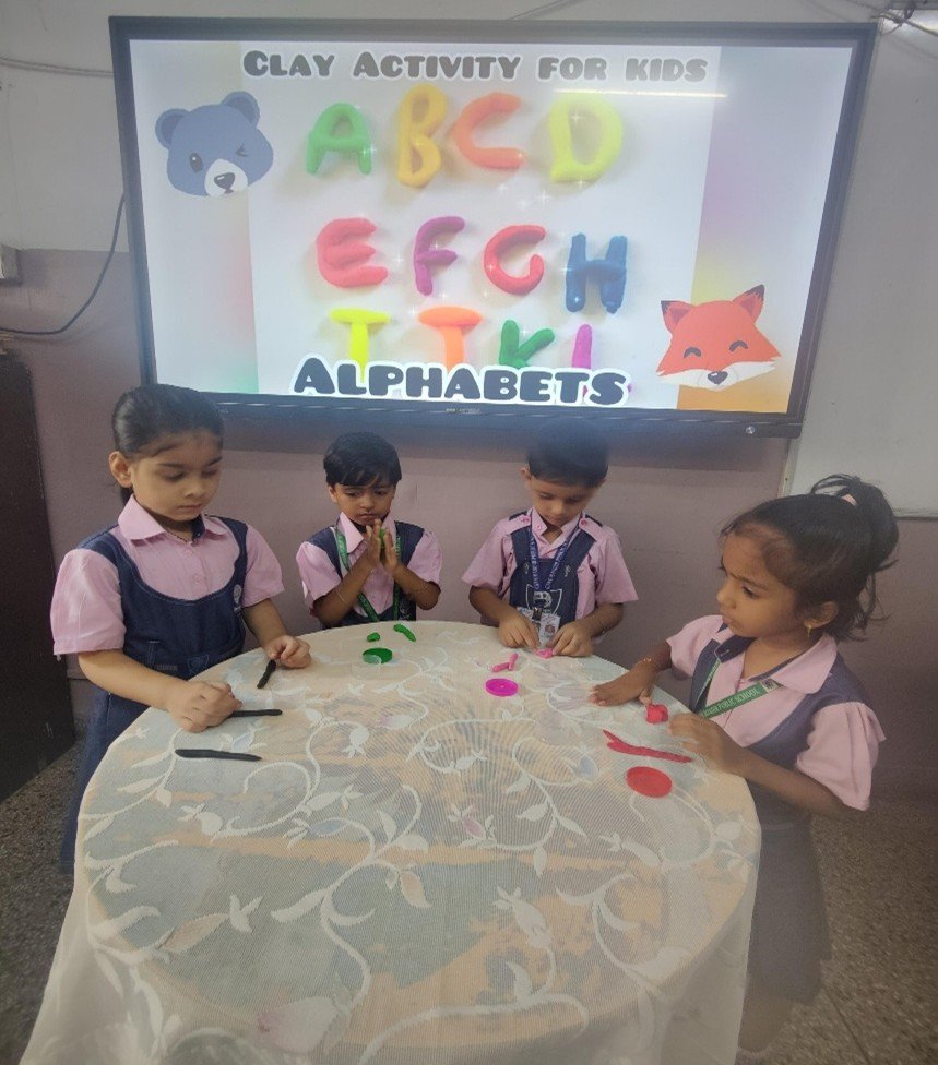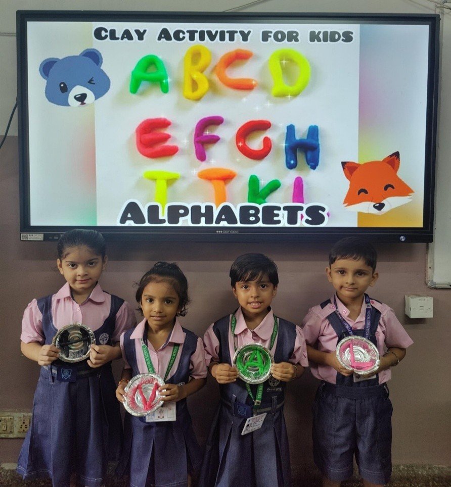 Clay is a substance that can be moulded into an endless number of forms. Clay modelling is one way to develop fine motor skills. It not only helps in developing pre -writing skills but also smoothens wrist and finger muscles preparing the young learners for the formal writing process. It also enhances eye hand coordination and encourages play based learning. Hence, a clay modelling activity was done in Pre- School classes on Tuesday, 29th September’23 to improve the knowledge of alphabet in students. Various letters like A, X, V ,W etc. were made by the students with clay. The students thoroughly enjoyed this hands-on activity. Some glimpse of this fun filled activity are given below.